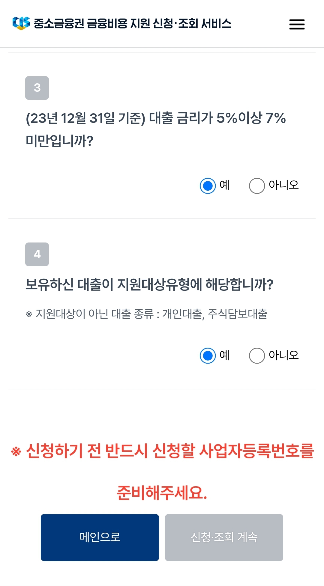 → 중소금융권 금융비용 지원 신청조회 서비스 접속하여 신청